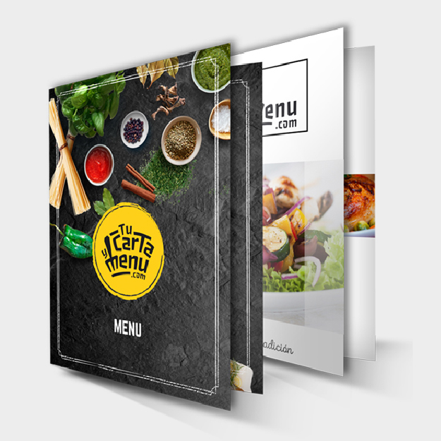 La carta menú es la entrada de un cliente a la cocina de su restaurante. Impresas en diferentes técnicas y tamaños